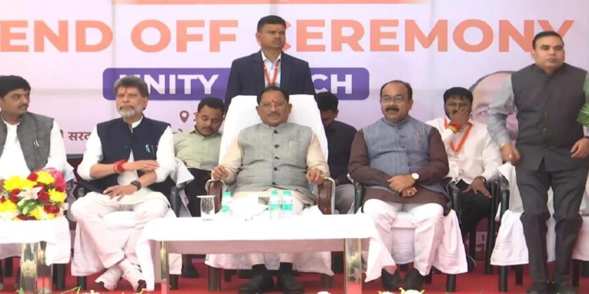 रायपुर : सरदार वल्लभभाई पटेल की जयंती के उपलक्ष्य में आयोजित यूनिटी मार्च 2025 में शामिल होने के लिए छत्तीसगढ़ के 68 युवा आज नागपुर के लिए रवाना हुए। रायपुर स्थित सरदार वल्लभभाई पटेल अंतरराष्ट्रीय हॉकी स्टेडियम में आयोजित कार्यक्रम में मुख्यमंत्री विष्णुदेव साय, डिप्टी सीएम अरुण साव और BJP प्रदेश अध्यक्ष किरण देव उपस्थित रहे। सभी ने ‘सरदार वल्लभभाई पटेल अमर रहे’ के नारे लगाए और युवाओं को शुभकामनाएं दीं।