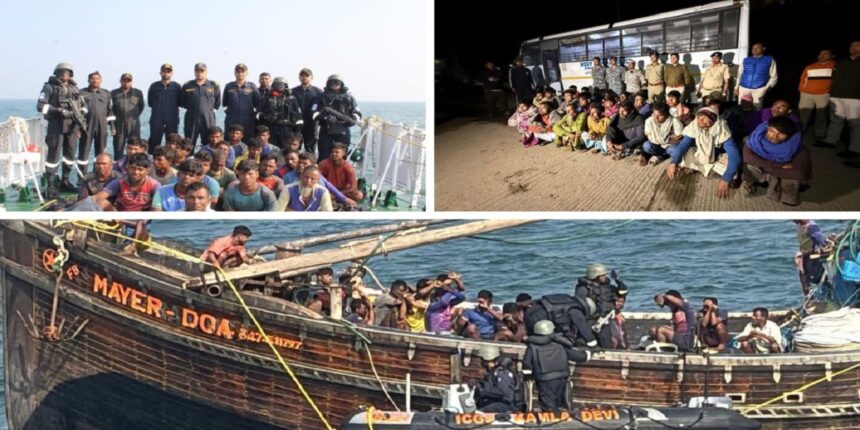 भारतीय तटरक्षक बल ने बांग्लादेशी नौकाओं पर बड़ी कार्रवाई की है। भारत के विशेष आर्थिक क्षेत्र (ईको) में अवैध रूप से मछली पकड़ने के आरोप में तीन बांग्लादेशी नौकाओं को जब्त किया गया है और इस पर सवार 79 लोगों को गिरफ्तार किया गया है। अधिकारियों ने मंगलवार को जानकारी दी है कि उन्होंने उत्तरी बंगाल की खाड़ी में इस कार्रवाई को अंजाम दिया है। भारतीय तटरक्षक बल (आईसीजी) के जहाजों द्वारा अंतरराष्ट्रीय समुद्री सीमा रेखा की निगरानी के दौरान ये कार्रवाई की है।