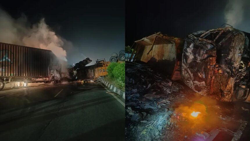 यह हादसा इतना भयानक था कि टक्कर के बाद बिस्किट से भरा ट्रक आग का गोला बन गया। बताया जा रहा है कि बिस्किट से लदा यह ट्रक डिवाइडर तोड़कर दूसरे ट्रेलर से जा टकराया। आग लगने के बाद ट्रक चालक कैबिन में फंस गया और उसकी मौके पर ही जलने से मौत हो गई। दूसरा ट्रेलर टाइल से भरा हुआ था।