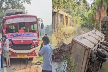 CG रोड एक्सीडेंट: हाईवे पर बस और तेज रफ्तार ट्रक की भयंकर टक्कर, पुल से नीचे गिरी ट्रक, ड्राइवर की मौत