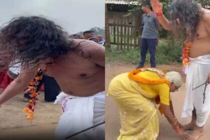 दुर्गा नवमी पर सांसद भोजराज नाग पर सवार हुईं देवी, ज्योति कलश विसर्जन यात्रा में दिखा अनोखा दृश्य