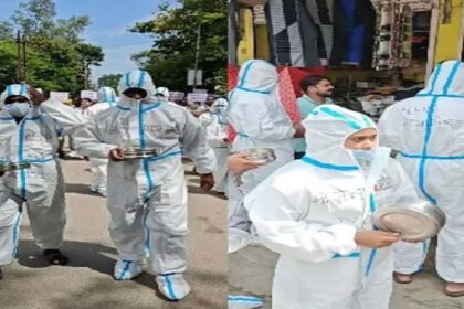 NHM कर्मचारियों का अनोखा प्रदर्शन: PPE किट पहनकर बाजार में मांगी भीख, नियमितीकरण की मांग तेज