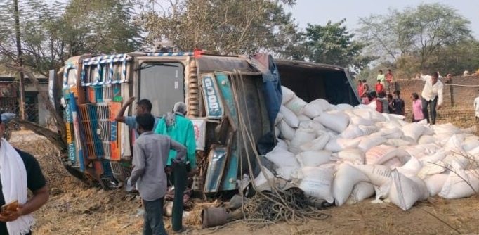 जांजगीर-चांपा : बम्हनीडीह ब्लॉक के गोविंदा गांव के बस स्टैंड मोड़ के पास शनिवार दोपहर शराब के नशे में धुत ट्रक चालक ने जमकर तांडव मचाया। चांपा रोड तरफ से चावल भरकर आ रहा ट्रक क्रं.(CG 11 AH 7770) तेजरफ्तार चलाते हुए ईको गाड़ी को टक्कर मार,11 केवी लाईन खंभे को तोड़कर,साथ ही घर के अहाता को तोड़ते हुए सीधे खेत में जा पलटा। हादसे में ट्रक चालक को मामूली चोटें आईं, लेकिन ट्रक पूरी तरह क्षतिग्रस्त हो गया, जिससे लाखों रुपये का नुकसान हुआ।