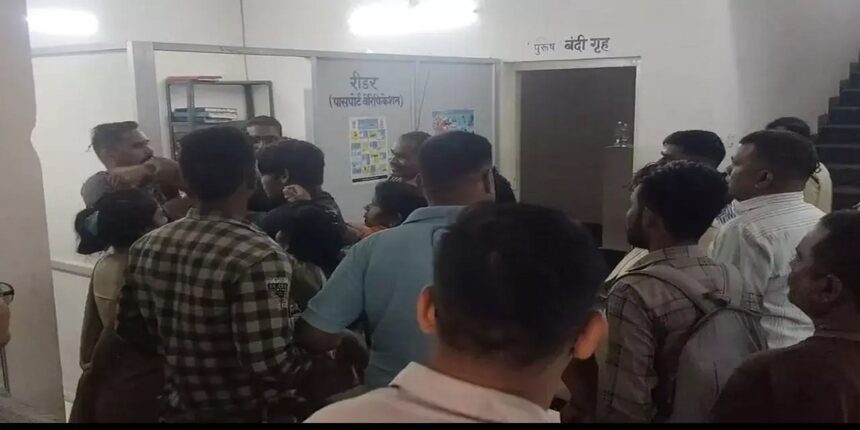 बिलासपुर : बिलासपुर में कुटुंब न्यायालय परिसर में दो पक्षों के बीच विवाद और जमकर मारपीट हुई। फरियादी बनकर पहुंचे प्रधान आरक्षक और बटालियन के सिपाही ने एक दूसरे से जमकर मारपीट की। विवाद यहीं नहीं रुका, दोनों पक्षों ने थाने में भी जमकर हंगामा मचाया। पुलिस ने दोनों पक्षों की शिकायत पर मामला दर्ज कर लिया है।