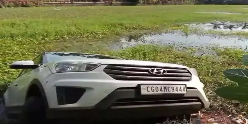 CG NEWS: अंधेरे में रिवर्स लेते वक्त कार तालाब में गिरी, बड़ा हादसा टला