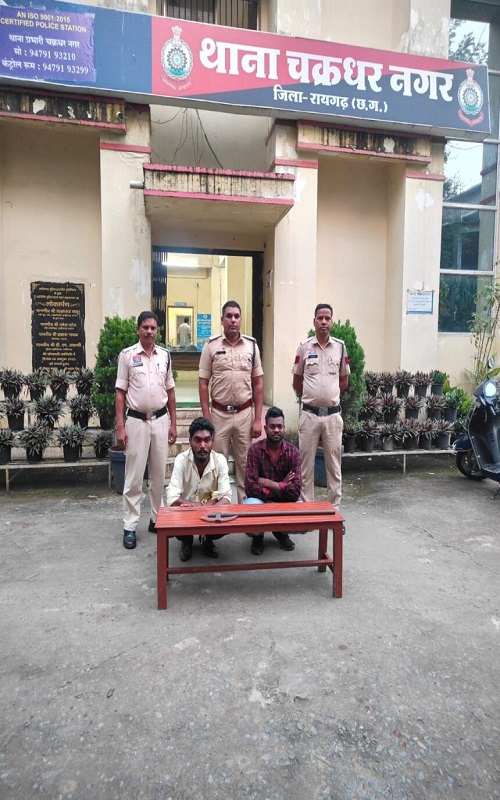 रायगढ़:  चक्रधरनगर पुलिस ने 7 अक्टूबर मंगलवार शाम मानकेश्वरी मंदिर के मेला स्थल (जामगांव) में धारदार हथियार लेकर घूम रहे दो युवकों को पकड़कर जेल भेज दिया है। दोनों आरोपी फरसा लहराते हुए लोगों को भयभीत कर रहे थे, जिन पर पुलिस ने आर्म्स एक्ट की सख्त धाराओं में मामला दर्ज किया है।