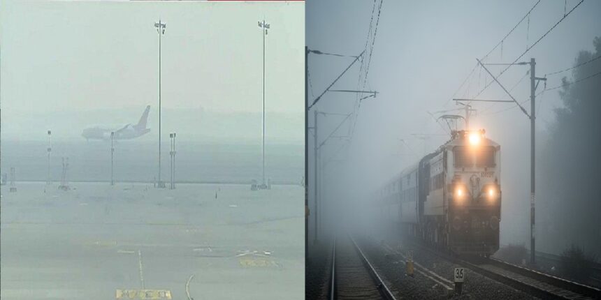खराब मौसम की वजह से ट्रेन लेट होने का सिलसिला जारी है. वहीं, सोमवार (22 दिसंबर) को उड़ानें भी कैंसिल हुई. दिल्ली समेत अन्य एयरपोर्ट्स से कुल 10 फ्लाइट रद्द की गई. कोहरे और धुंध के कारण आज 102 दर्जन ट्रेन निर्धारित समय से लेट चल रही है. जबकि कई ट्रेनों को डायवर्ट किया गया है. दिल्ली समेत देश के कई हिस्सों में घने कोहरे और शीतलहर का प्रकोप जारी है. इसका असर विजिबिलिटी पर भी पड़ता दिख रहा है. मौसम विभाग के अनुमान के मुताबिक, पंजाब, हरियाणा और उत्तर प्रदेश के कई इलाकों में 22 से 27 दिसंबर के बीच बहुत घना कोहरा छाया रहेगा.