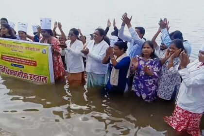 CG NHM Protest: नियमितीकरण समेत अन्य मांगों को लेकर बालोद में एनएचएम कर्मचारियों का जल सत्याग्रह प्रदर्शन