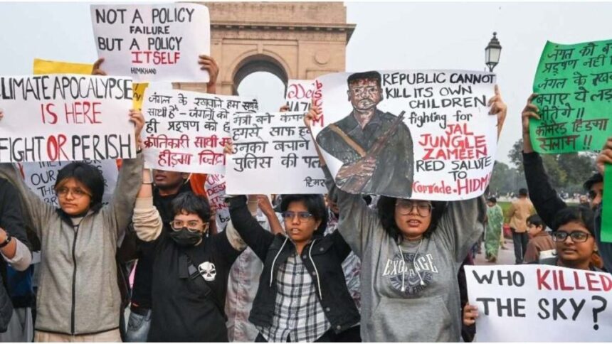 दिल्ली : छत्तीसगढ़ में नक्सली लीडर माड़वी हिड़मा के एनकाउंटर के बाद मामला अब सोशल मीडिया से निकलकर देश की राजधानी की सड़कों तक पहुंच गया है. इंडिया गेट के सामने प्रदूषण के खिलाफ जुटी भीड़ में अचानक कुछ युवक हिड़मा के पोस्टर लहराते हुए “हिड़मा जिंदाबाद” के नारे लगाने लगे. मौके पर मौजूद लोगों और सुरक्षा कर्मियों ने इस अप्रत्याशित घटना को तुरंत नोटिस किया, जिसके बाद दिल्ली पुलिस और खुफिया एजेंसियां अलर्ट हो गई हैं.